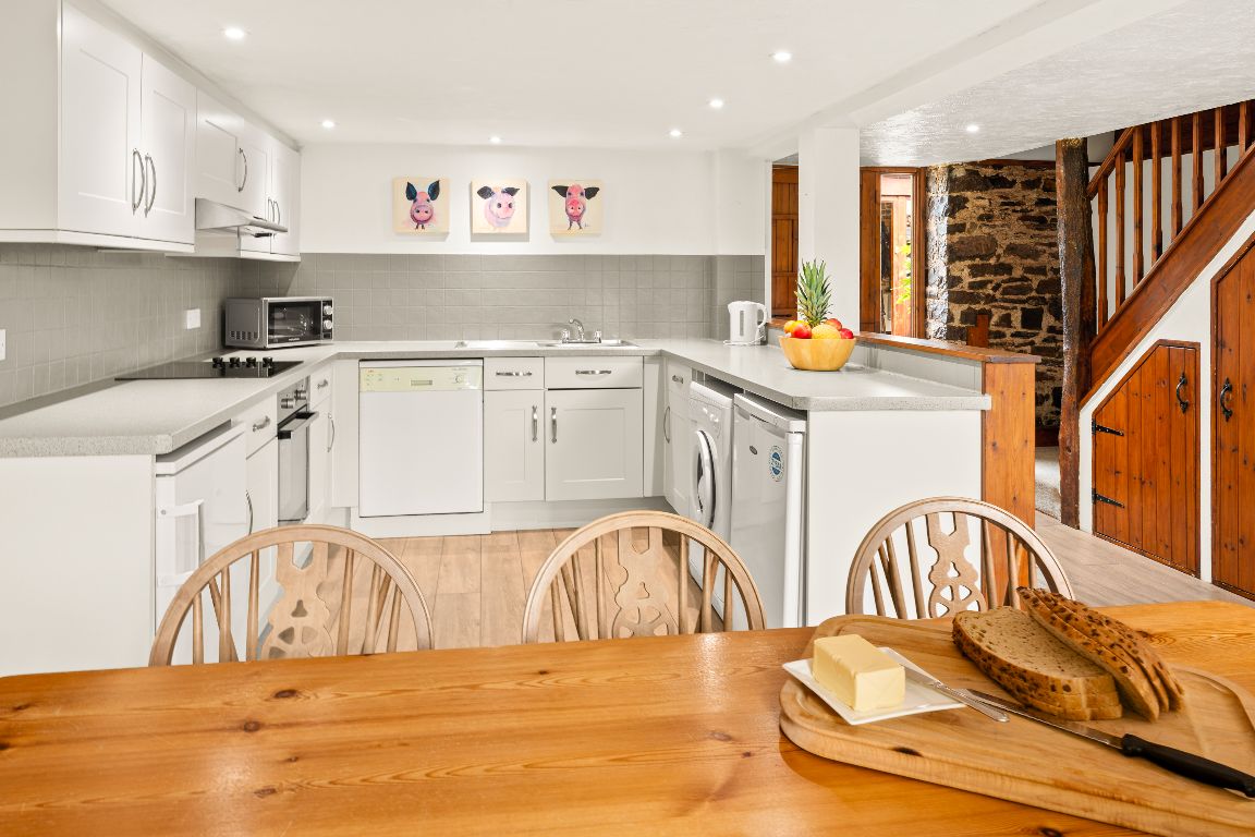 Entering from its private patio, you find a large kitchen and dining area leading to a spacious and sunny sitting room which has Sky TV with movies and sports channels and a wood-burning stove. The double bedroom with en-suite shower room is located on the ground floor making it ideal for those guests who prefer not to climb stairs. On the first floor, the king and twin bedrooms both have en-suite bathrooms. The private, fenced courtyard garden is a sun trap and the barbecue and patio furniture make a great extension to the indoor living space.